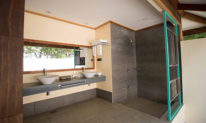 木(mù)質(zhi)陽(yáng)檯(tai)風格的(de)住處,頗具(ju)當地文(wén)化特色。空間開闊的(de)瀉湖(hú)按摩沙灘别墅 (Lagoon Jacuzzi Beach Villas)提供了(le)所有(yǒu)沙灘别墅的(de)設(shè)施。其中(zhong)包括大(da)于(yu)58平方(fang)米的(de)房間,熱帶風格的(de)四柱牀(chuang),私人(ren)按摩浴缸(gang),花(huā)園庭院。别墅造(zao)型設(shè)計(ji)極富(fu)當地文(wén)化特色,現(xian)代(dai)化設(shè)施一(yi)應俱全,長(zhang)廊內(nei)樹木(mù)茂盛(sheng)。在(zai)此,旅客可(kě)飽覽長(zhang)約4公(gōng)裏的(de)海灘及(ji)島上藍色珊瑚礁的(de)壯麗景緻。